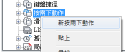 中的自訂」窗格中,在「按兩下動作」節點按一下右鍵。按一下「新按兩下動作」。