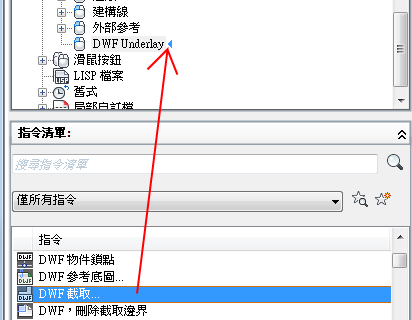 在「指令清單」窗格中,將要加入的指令拖曳至「<