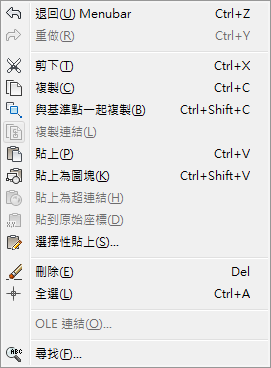以下是在「複製連結」功能表項目的「名稱」性質加入一個波狀符號 (~) 之後,顯示在「編輯」功能表的結果。