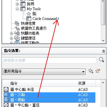 在「指令清單」窗格中,將要加入的指令拖曳至「<