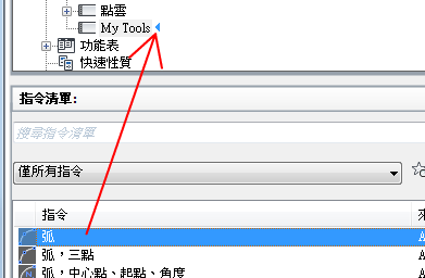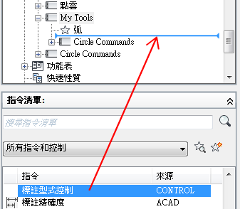「指令清單」窗格僅會顯示工具列控制元素的清單。