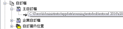 - 在「Windows 檔案總管」或「檔案總管」中,導覽至<磁碟機>:\Users\<使用者設定檔名稱>\AppData\Roaming\Autodesk\<產品名稱>\<版本號碼>\<語言>\support\<自訂檔名稱>.cuix。