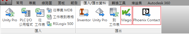 您可以從 AutoCAD Electrical 匯出端子排,然後將其匯入至 Wago 或 Phoenix Contact 應用程式,以設計、操控和驗證端子排。