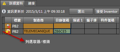 如果您的標籤、安裝和位置屬性存在差異,請使用對等的 Inventor 值手動更新 Electrical 元件的值,因為這些屬性不屬於「接受 Inventor」作業。