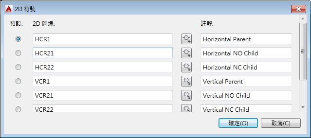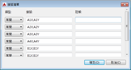 按一下以開啟「接腳清單」對話方塊,您可在其中定義子符號的接腳。