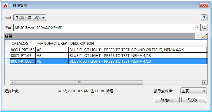 - 輸入搜尋 AB 30.5mm "120VAC XFMR",然後按一下