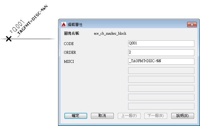 註: 在標識圖塊上定義的屬性值將取代所有定義在工作表中的值。