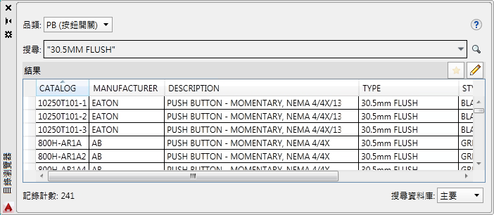 從目錄資料庫選取目錄值,然後插入關聯的線路圖元件。