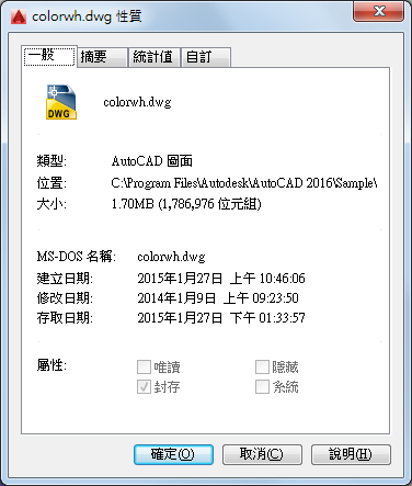 指示此檔案是系統檔案。圖面不能有「系統」屬性設定。