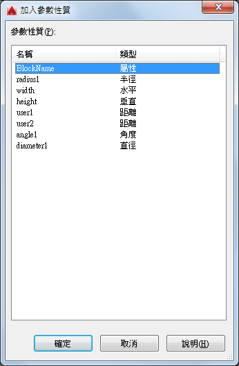 顯示尺度約束參數、使用者參數、舊式參數和屬性定義的清單。