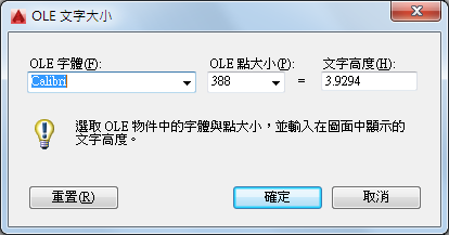 在圖面中插入 OLE 物件時,將該物件還原至其原來大小。
