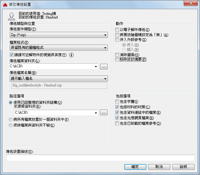 傳送圖紙集時,來源根資料夾也包含圖紙資料 (DST) 檔。(不適用於 AutoCAD LT)。