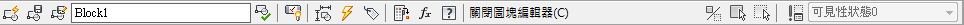 功能區處於非作用中狀態時,會顯示圖塊編輯器工具列。在關閉功能區的情況下進入圖塊編輯器時,也會顯示圖塊編輯器工具列。