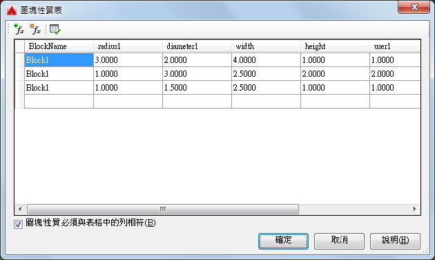 透過格線控制定義圖塊定義中一組使用者所定義性質的變化。