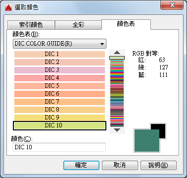 一旦選取顏色表,「顏色表」頁籤便會顯示選取的顏色表名稱。