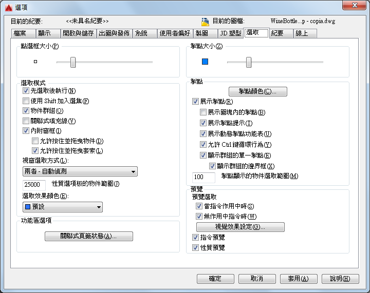 控制在核發指令之前 (先選取再執行) 還是之後選取物件。(PICKFIRST 系統變數)