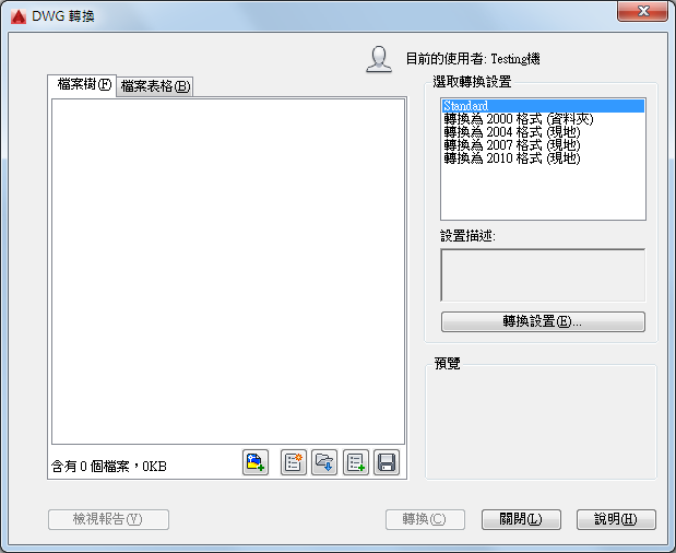 清除所有圖面的清單以便您選取要轉換圖面的新清單。如果清單已變更,則會提示您儲存目前清單。