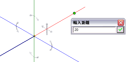 在游標暫停在旋轉箭頭或 3D 正投影佈線的方向軸線上時,輸入精確距離的值。