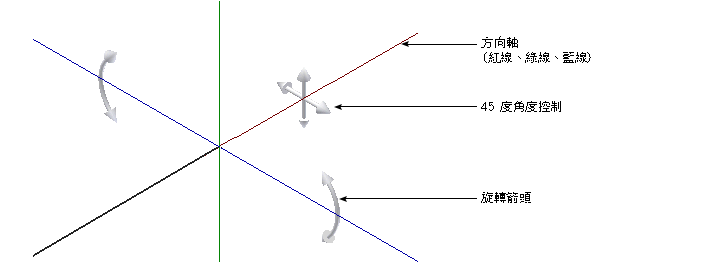 展示下一個佈線點的有效方向。按一下直線以在該方向加入節點。與「點鎖點」一起使用,可以在參考幾何圖形的軸線方向上定義工作點。