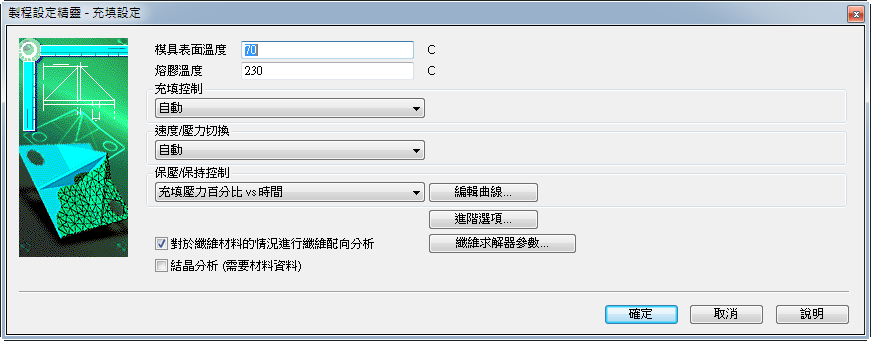 在此步驟中,將檢閱成型製程設定並開始分析。