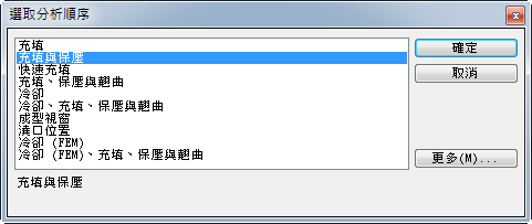 在此工作中,您會將分析順序設定為「充填與保壓」。