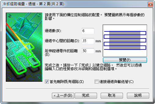 在此工作中,您將使用「冷卻迴路精靈」來建立簡單的冷卻通道。