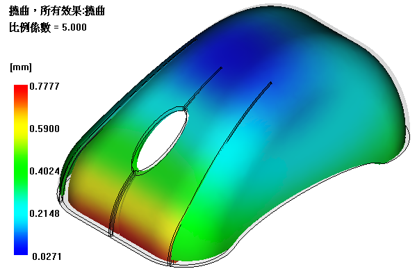 此工具可將結果比例放大 5 倍,以便更易於查看撓曲。