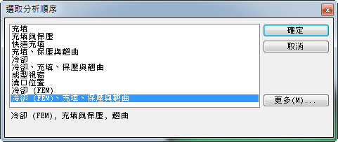 選取「冷卻 (FEM)、充填、保壓與翹曲」。