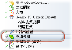 在此步驟中,您將使用「充填預覽」工具來研究具有不同射出位置的充填陣列。