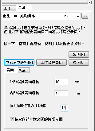 完成建立網格後,不勾選「模具外部三角形」圖層。