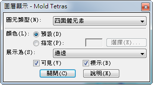 在「模具四面體」圖層上按一下右鍵,然後選取「顯示」。
