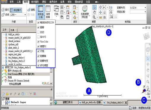 若您對最大化「模型」窗格的內容,以便更清楚地看到模型的詳細資料非常有興趣,可以從「檢視」頁籤打開和關閉各種使用者介面項目。按一下
