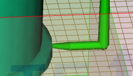 - 選取「透過座標定義」,並將游標移到朝向流道的設計格線上。隨即會從射出位置開始到距離游標最近的網格點繪製一條黃色的細線。黃色小球表示澆口的終點。