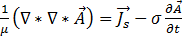 可以使用歐姆定律,將馬克士威方程式進一步簡化:
