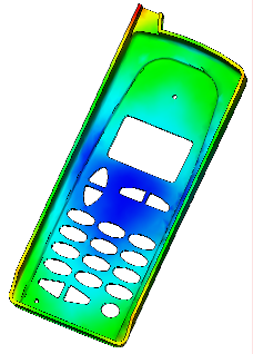 如果您不想使用「入門」自學課程中的相同專案,則需要建立一個新專案並匯入 cellphone.stl 自學課程檔案。您可以在「tutorial」資料夾 (如 C:\Program Files\Autodesk\Moldflow Adviser xxxx \tutorial ,其中 xxxx 是軟體版本) 中找到它。請確保刪除模型上的所有既有澆口位置。