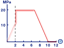 以下是保壓曲線的三個範例,各曲線下方的表格列出了用來達到曲線所示情況的值。