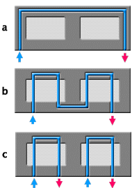 為避免發生這些問題,應將很長的迴路分為二或多個較短的迴路,如圖 c 所示。