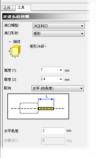 確保澆口形狀為「矩形」。