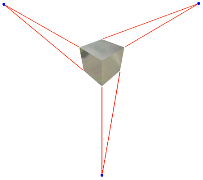 在正投影投影模式下,會顯示模型,使其所有點都沿平行線投影至它們在螢幕上的位置。