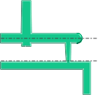 下潛式澆口用於兩板式模具建構。傾斜的錐形隧道位於分模線下,且從流道的一端連接至母模仁,如下圖所示。