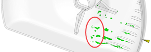 如果零件在最後一個影像中亮顯的區域中有表面瑕疵,可能起因於第一個影像中形成的熔接表面。