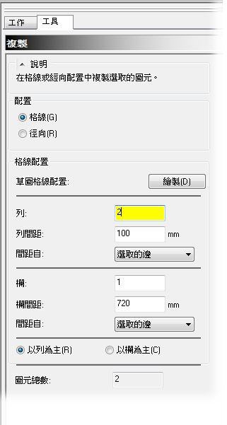 按一下 (「幾何圖形」頁籤 > 「配置」面板 > 「配置重複」)。
