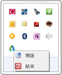 。如果看不見圖示,則 Application Manager 目前並未執行。如果有顯示圖示,請在其上按一下右鍵,然後按一下「結束」。
