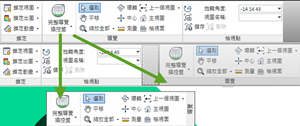 - 您可以讓頁籤內的面板浮動或移動到頁籤中的其他位置,或是移到「模型」視窗中 (若您想要這麼做)。只要按一下面板的標題並拖曳即可。若要將面板返回頁籤,只要將其拖曳回頁籤即可。您還可以將面板保留在「模型」視窗中並變更頁籤,爾後當您將面板拖曳回功能區時,它會返回至其原始頁籤。