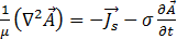 可以使用歐姆定律,將馬克士威方程式進一步簡化: