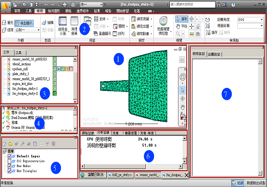 「模型」窗格是使用者介面最大的一部分。在「模型」窗格的底部有一些頁籤。每個頁籤都代表一個在專案的此工作階段中開啟的不同研究。作用中研究的頁籤在最前面。