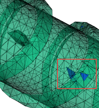 選項,可亮顯由兩個四面體元素共用的三角面,但元素的相對節點位於三角面錯誤的一側。