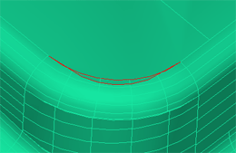 - 按一下表面拓樸中的迴路曲線項目,直到在模型上亮顯有連接問題的邊段為止。