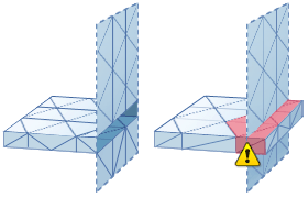 在模型中沒有幾何圖形重疊或交點。此情況與以上定義 (1) 無關。STL 可以是正確的各式形邊,但仍可能因三角形幾何圖形彼此之間相交或重疊而出現重疊與/或交點。