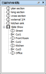 「儲存的視點」視窗是一個可停靠的視窗,可讓您跳至預置視點,而無需每次都導覽才能到達項目。